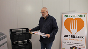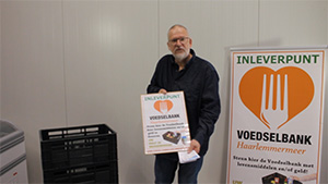 Goedendag meneer, We zijn hier namens de Voedselbank Haarlemmermeer. Heeft u een extra boodschap voor ons over We hebben hier een mooi lijstje. Die kunt u midden in de winkel vinden op de tafel of in het speciale schap.