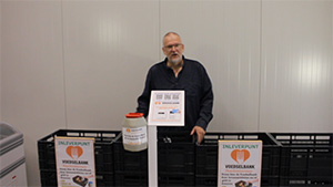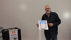 Voor de inzameling in deze week zijn bij Albert Heijn in Spaarndam en Zwanenburg. Daar zal deze paal komen te staan. Daarmee kunnen we ook nog contant geld binnenhalen maar de mensen kunnen ook via de QR code online doneren. Want omdat het twee eigenlijk normale inzamelingen zijn zullen de kratten ook breder neergezet worden.