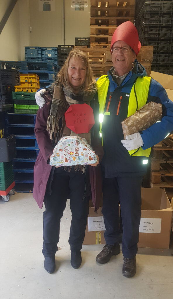 Dat wordt allemaal geregeld door de Stichting Sint voor ieder1 én de hulp-Pieten van de Voedselbank.